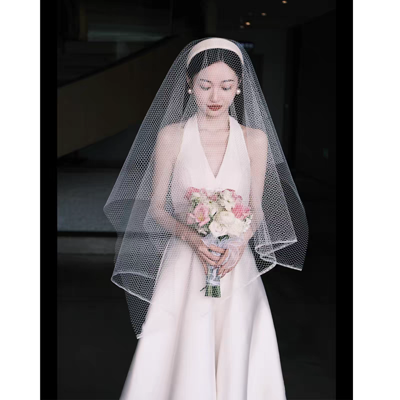 法式白色新娘晨袍宴会年会旅拍登记领证迎宾出门轻纱晚礼服连衣裙