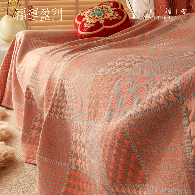 沙发巾奶油风高档A级全棉双面三层纱秋冬盖布全盖四季通用沙发垫