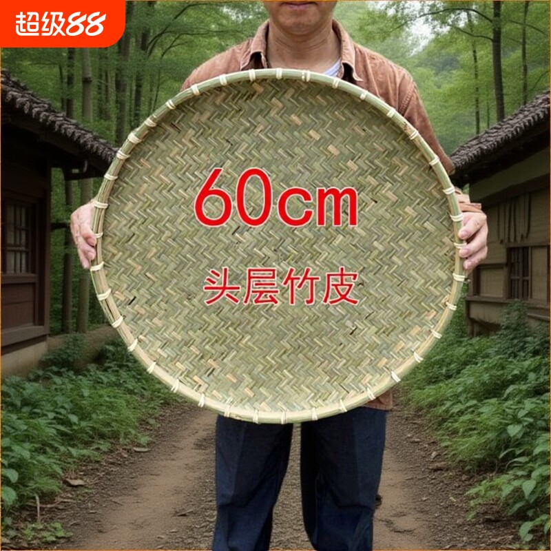 加厚头层竹皮簸箕藤锁边竹筛子无孔竹编制品竹匾晒干货家用晾晒筐