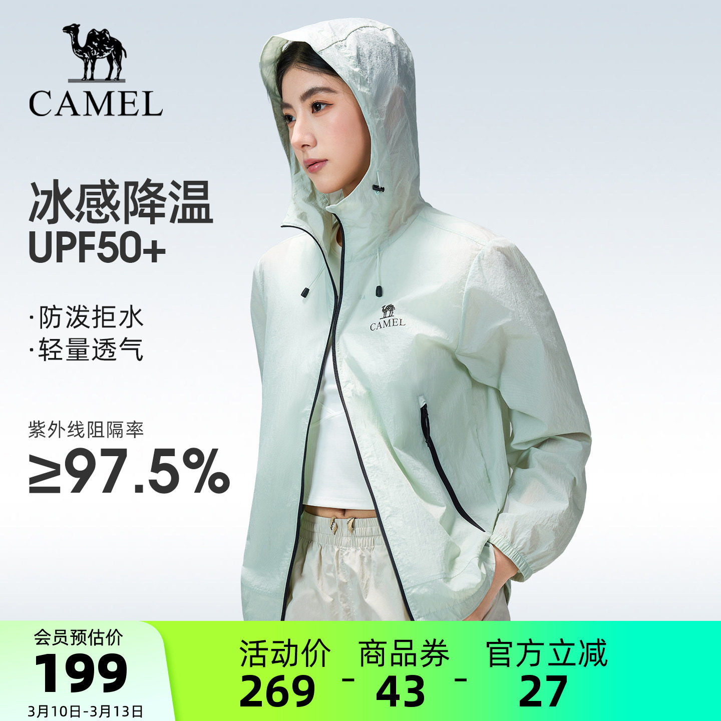骆驼户外防晒衣2026春夏新款女款凉感防泼水连帽防晒服运动外套