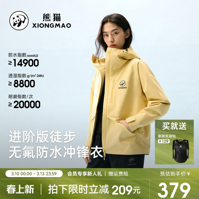 熊猫户外冲锋衣女外套2026春夏新款防水防风耐磨连帽徒步登山服