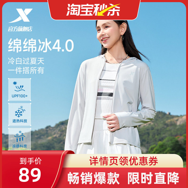 特步绵绵4.0冰防晒衣女款2026春夏新款皮肤衣户外轻薄外套防晒服