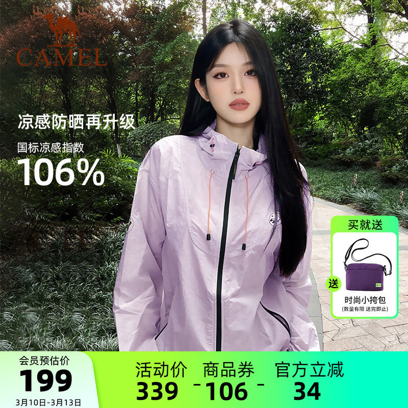 骆驼透气防晒衣女2026春夏凉感连帽防晒服户外宽松百搭休闲外套女