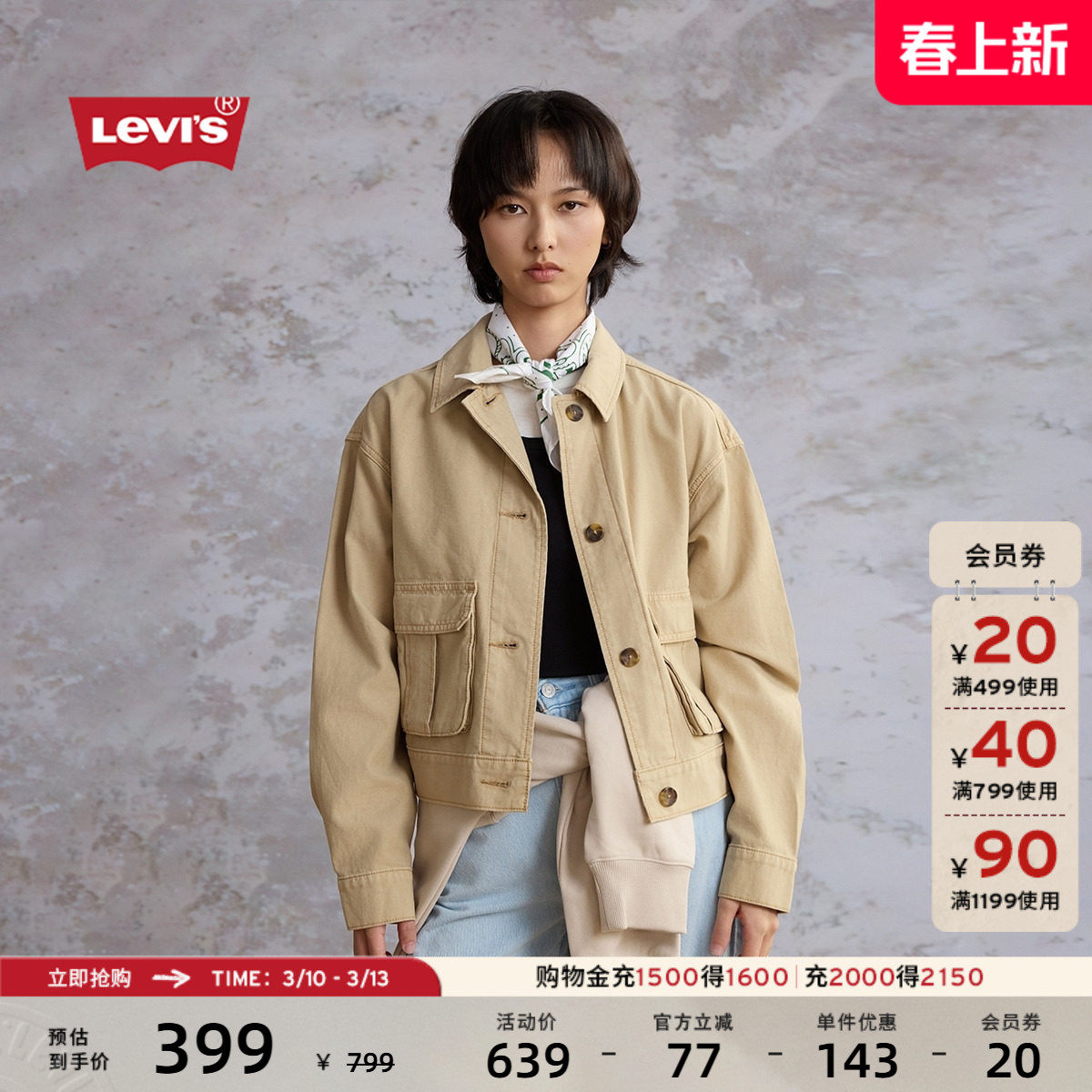 Levi's李维斯26年春夏新款女士美式复古工装风简约老钱风短外套