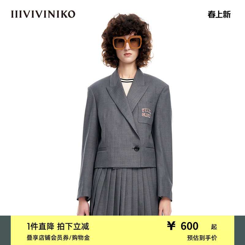 IIIVIVINIKO春夏新品学院风羊毛混纺短款西装外套女M312704112B