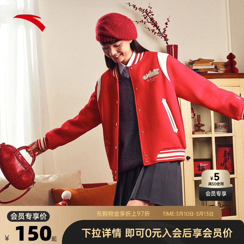 安踏好事发生丨棒球服外套女士春夏学院风红色夹克新年马年本命年