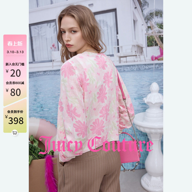 Juicy Couture橘滋外套女26春夏新款撞色花朵印花针织薄毛衣开衫