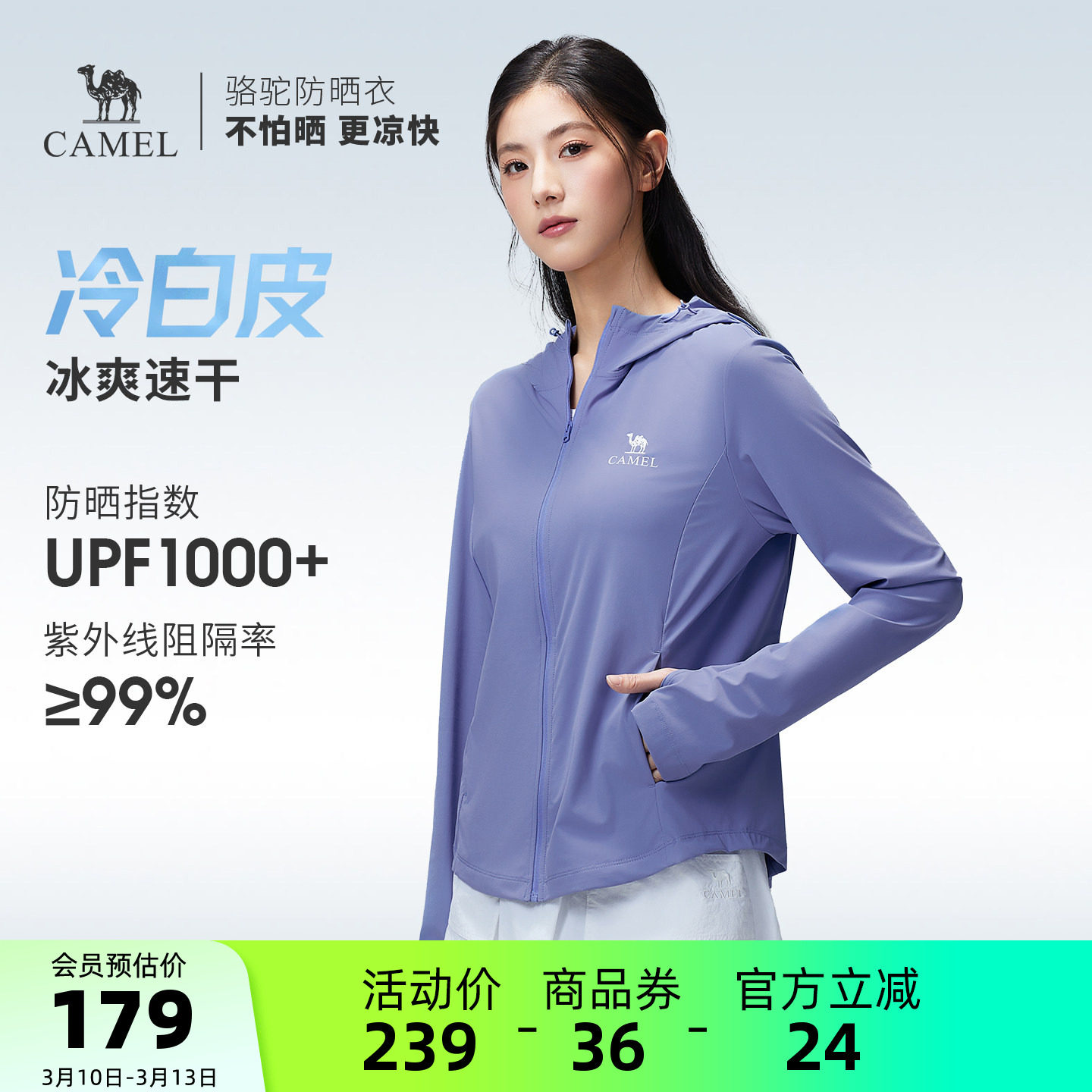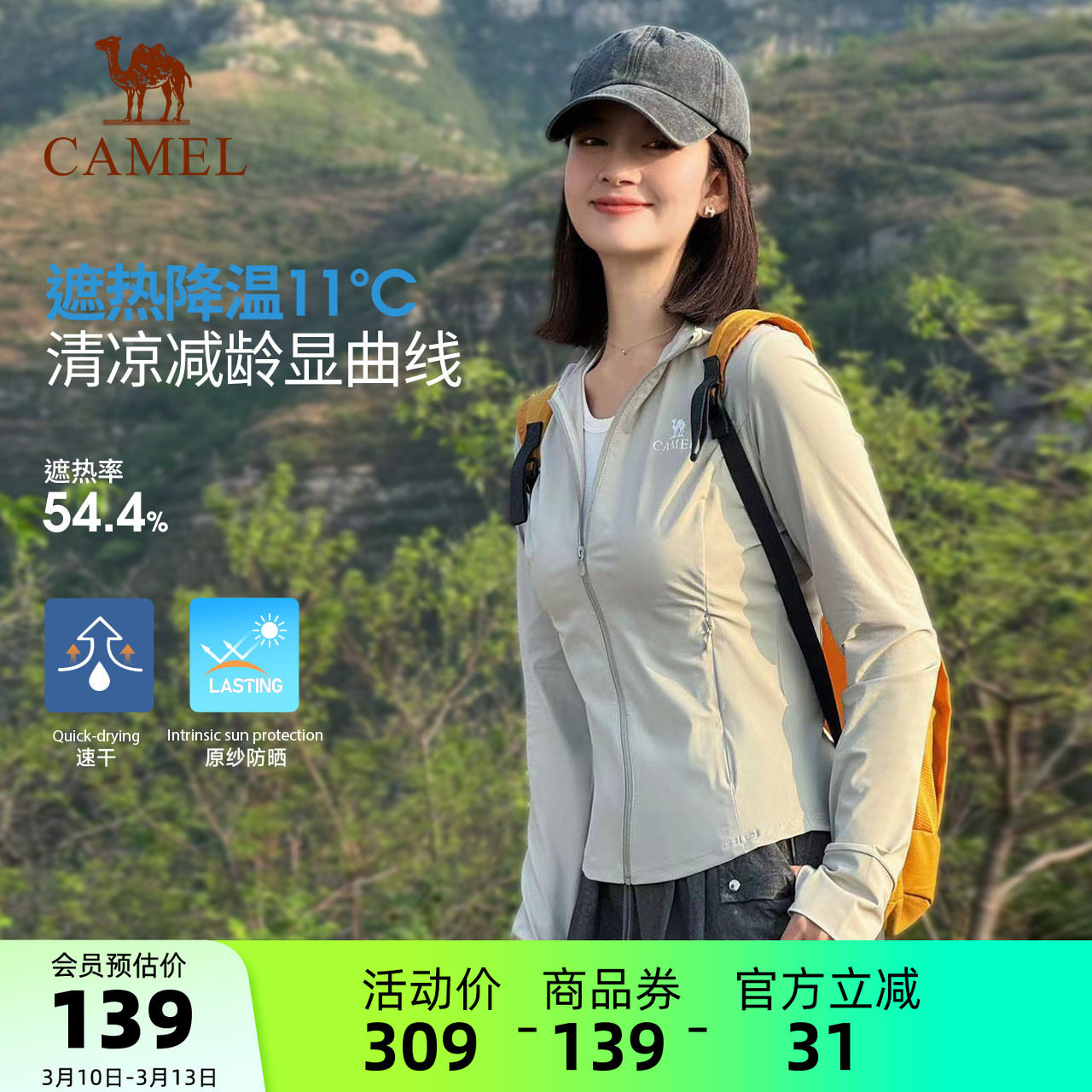 骆驼冷白皮白玉户外原纱防晒衣2026春夏新款女款修身显瘦运动外套