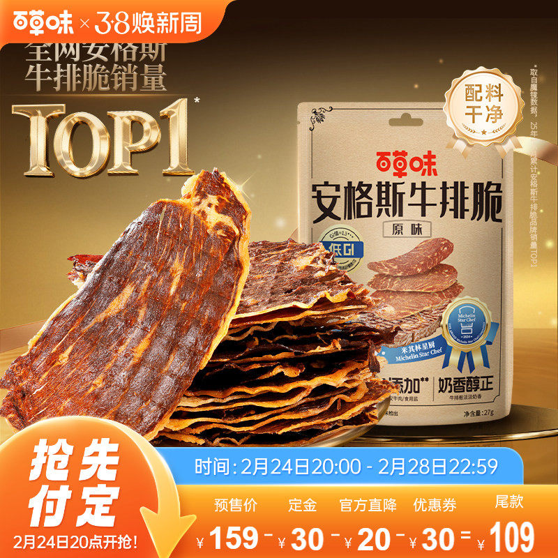 【38预售】百草味安格斯牛排脆片风干牛肉干零食礼包追剧儿童零食