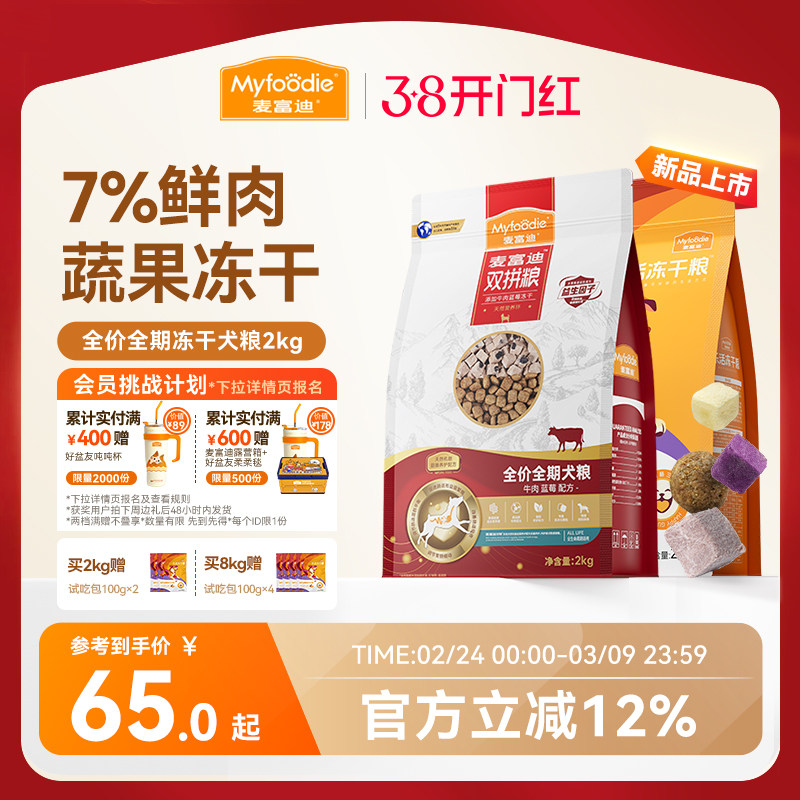 麦富迪狗粮牛肉蓝莓冻干双拼粮泰迪金毛成犬幼犬粮小型犬通用狗粮