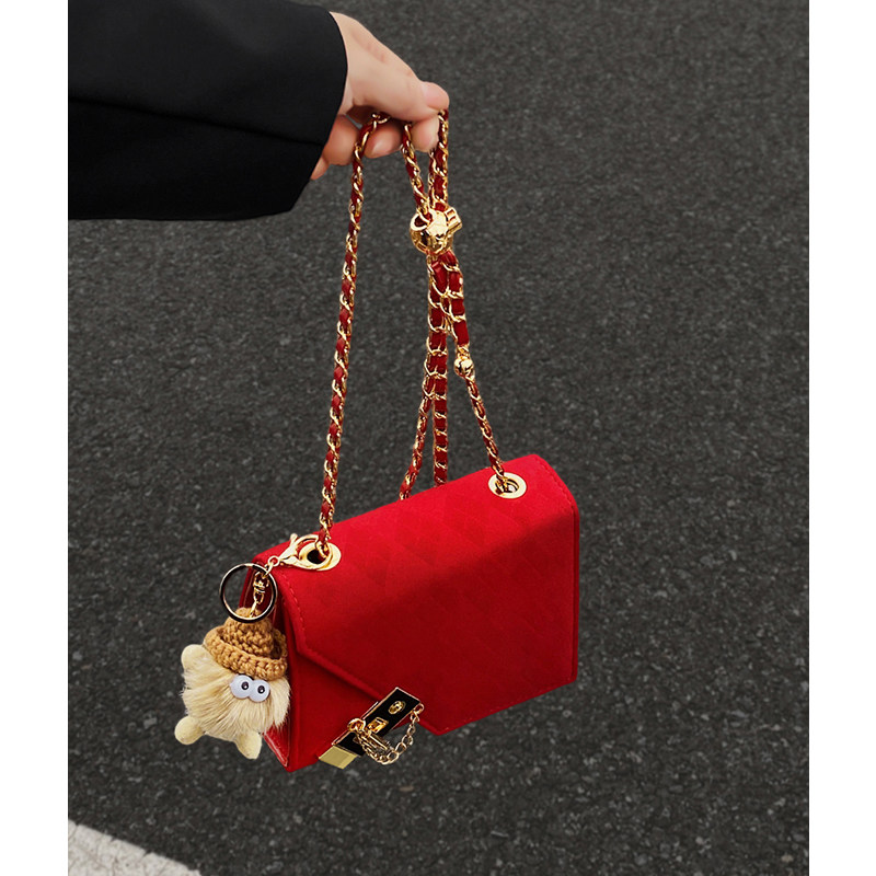 婚包高级感丝绒小包包女包2025新款伴娘包单肩斜挎链条小包新娘包