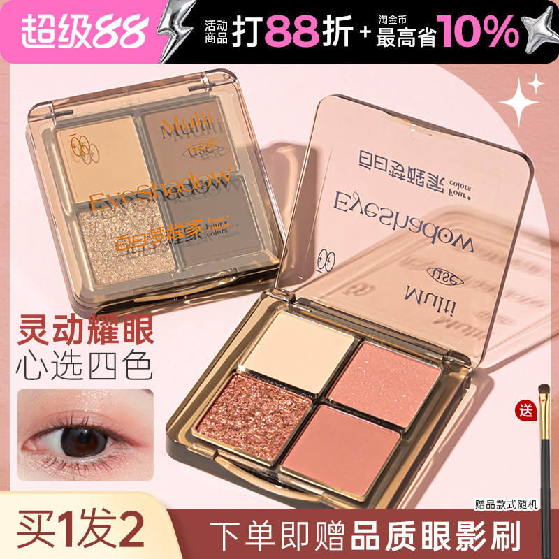 白日梦醒家四色眼影盘粉棕大地烟熏盘新哑光珠光爆闪亮片新手彩妆