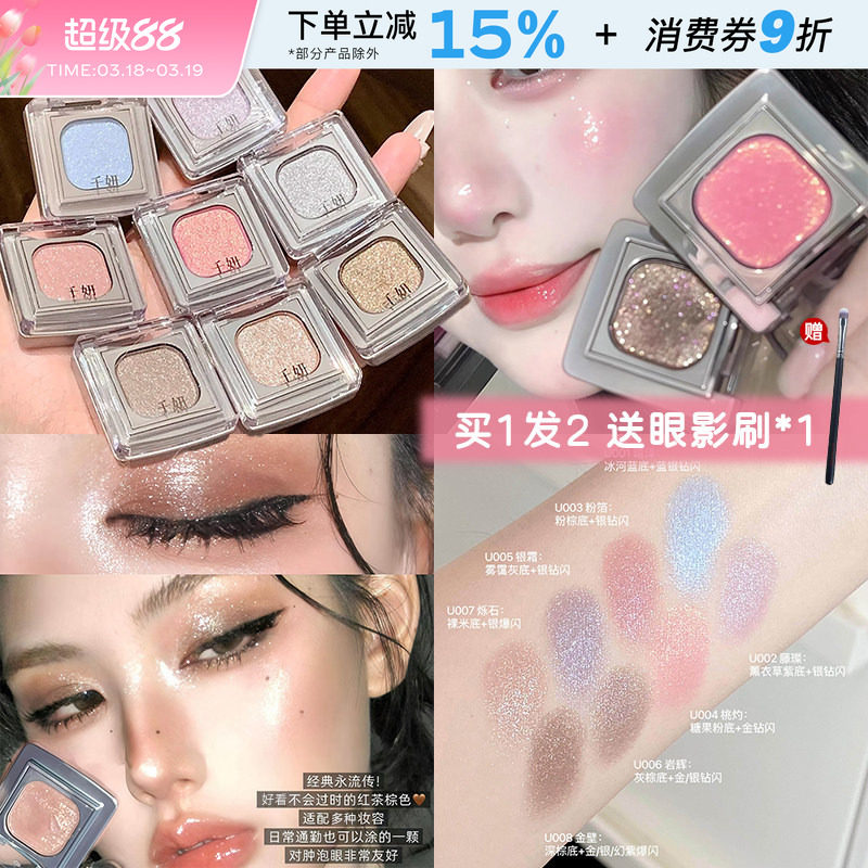 千妍单色眼影盘烘焙彩色哑光珠光爆闪细闪亮片烤粉裸棕色日常打底