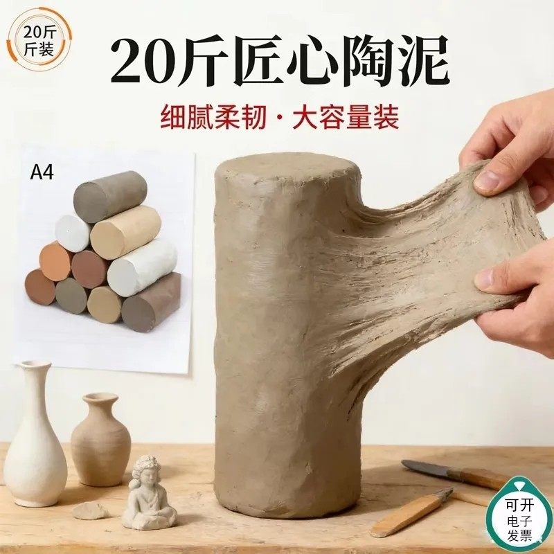 水流星瓷泥陶泥批量高白泥陶泥粘土陶土泥塑陶艺20斤陶艺教学包邮