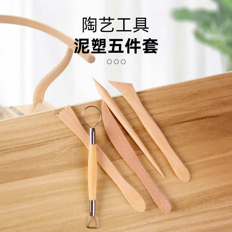 陶艺工具5件套 实木五件套陶瓷制作工具套装陶泥粘土泥塑制陶工具