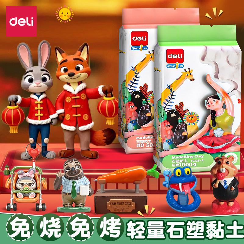 得力石塑粘土黏土diy材料包儿童手工软陶泥粘土石膏免烤安全无毒