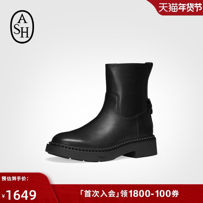 ASH女靴秋冬MAGNUM真皮短靴女粗跟侧拉链切尔西靴子时装单靴