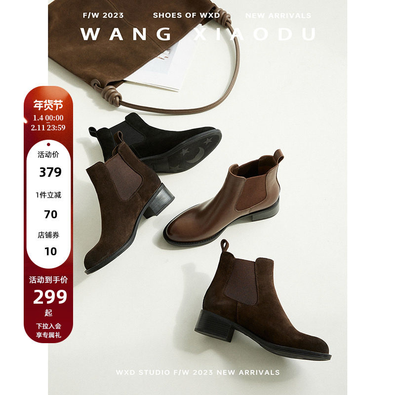 【王小毒】十年·缘分●4cm真皮切尔西短靴女粗跟加绒秀气瘦瘦靴