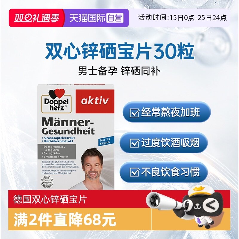 【自营】德国双心锌硒宝片30粒复合维生素南瓜籽男性补充锌硒胶囊
