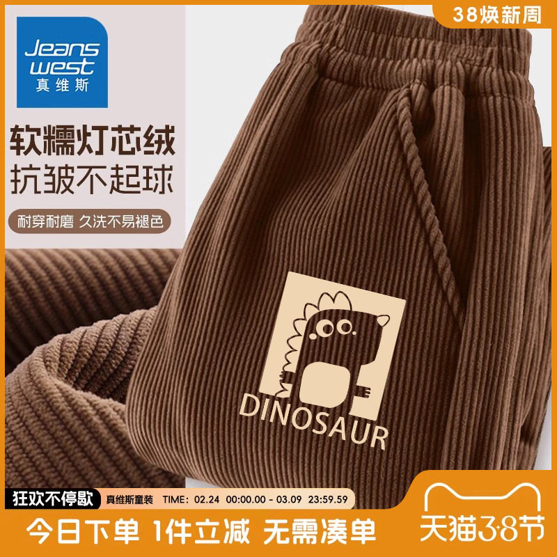 真维斯童装男童加绒裤子2025新款灯芯绒长裤男大童加厚儿童运动裤