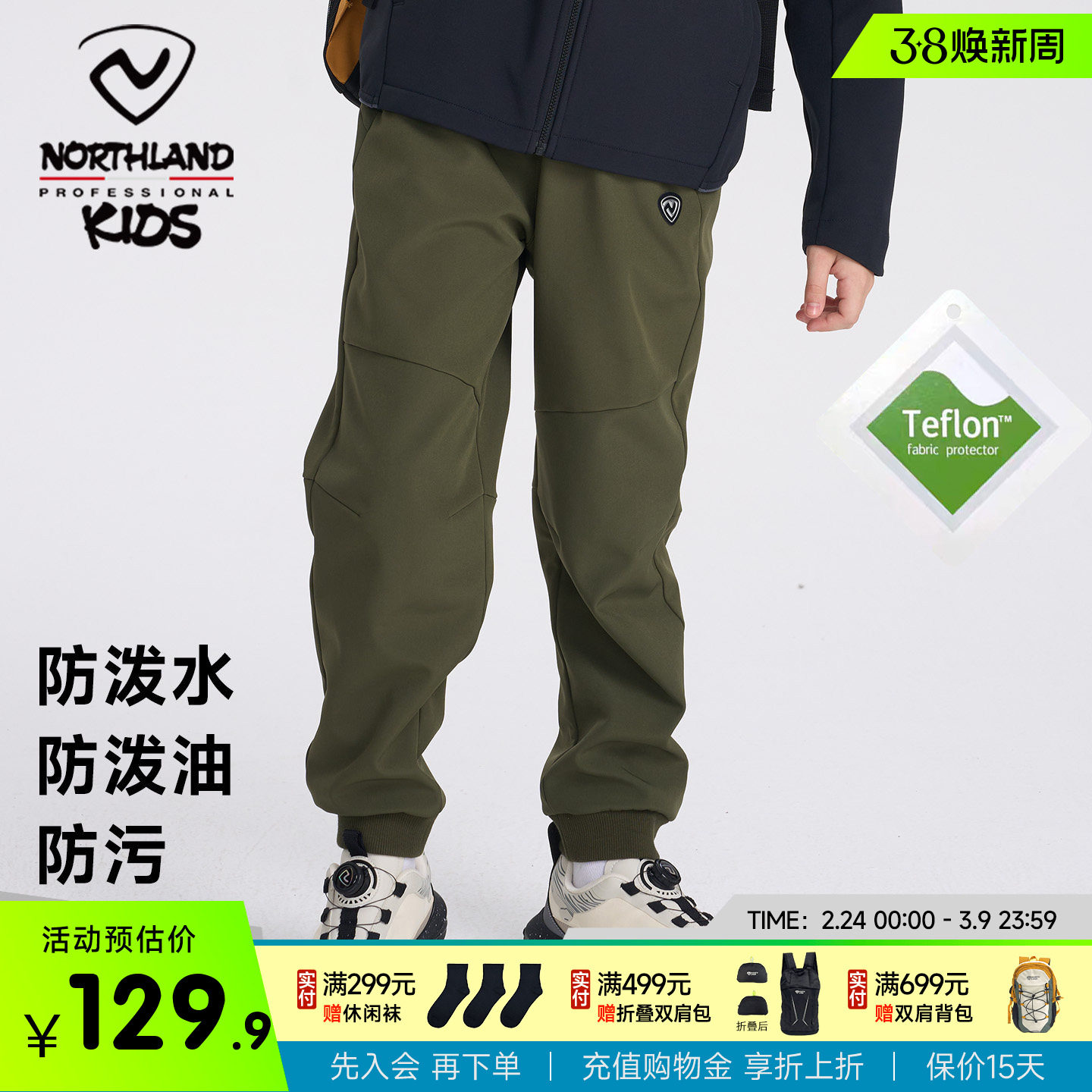 特步童装春季儿童运动裤男童加绒户外长裤大童三防梭织保暖裤春装