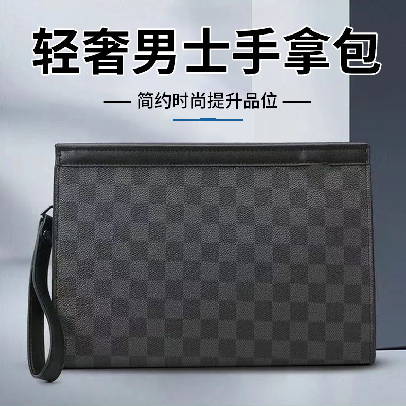2024年新款手包男款男士手拿包格子时尚信封包手抓包商务手夹包