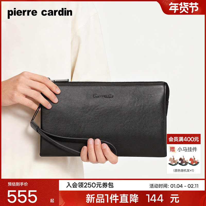 【真皮】皮尔卡丹男士手拿包商务高档男款手包时尚牛皮手抓包新款