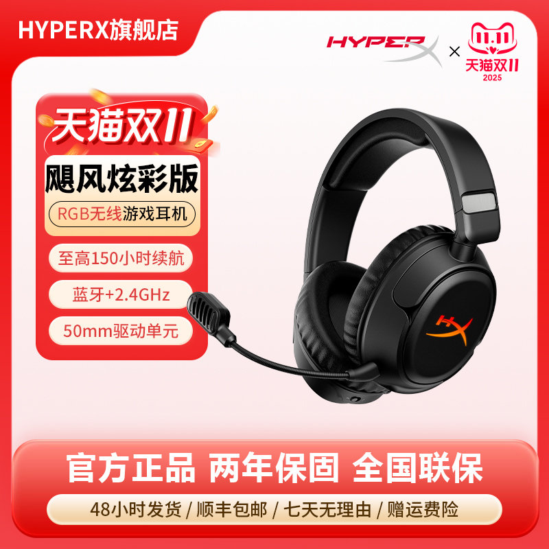 HyperX极度未知 飓风炫彩无线耳机 头戴式2.4Ghz电竞游戏蓝牙耳麦