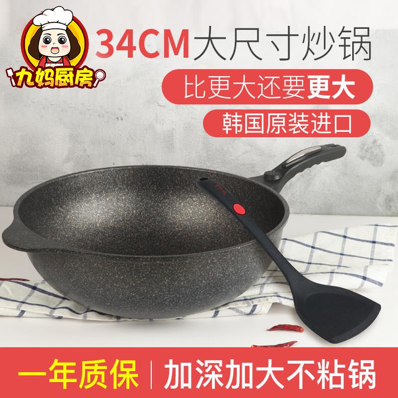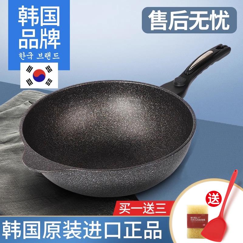 韩国麦饭石不粘锅炒锅家用原装进口电磁炉燃气灶专用不沾锅炒菜锅