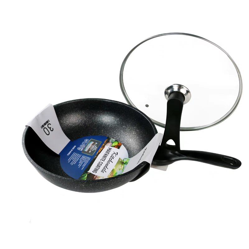 韩国进口麦饭石炒锅不粘少油烟平底锅燃气灶电磁炉用家用炒菜锅具