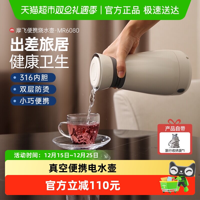摩飞便携烧水壶旅行出差宿舍办公室烧水电热水壶保温杯小型电热杯