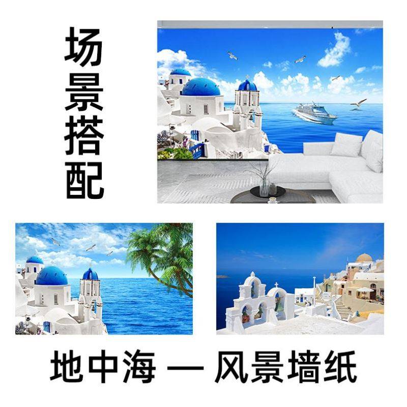 地中海风格主题壁纸海边风景客厅墙布希腊爱琴海酒店主题房间墙纸