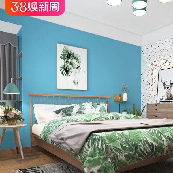 地中海蓝色纯色素色墙纸非自粘北欧风格灰色壁纸客厅卧室背景磨砂