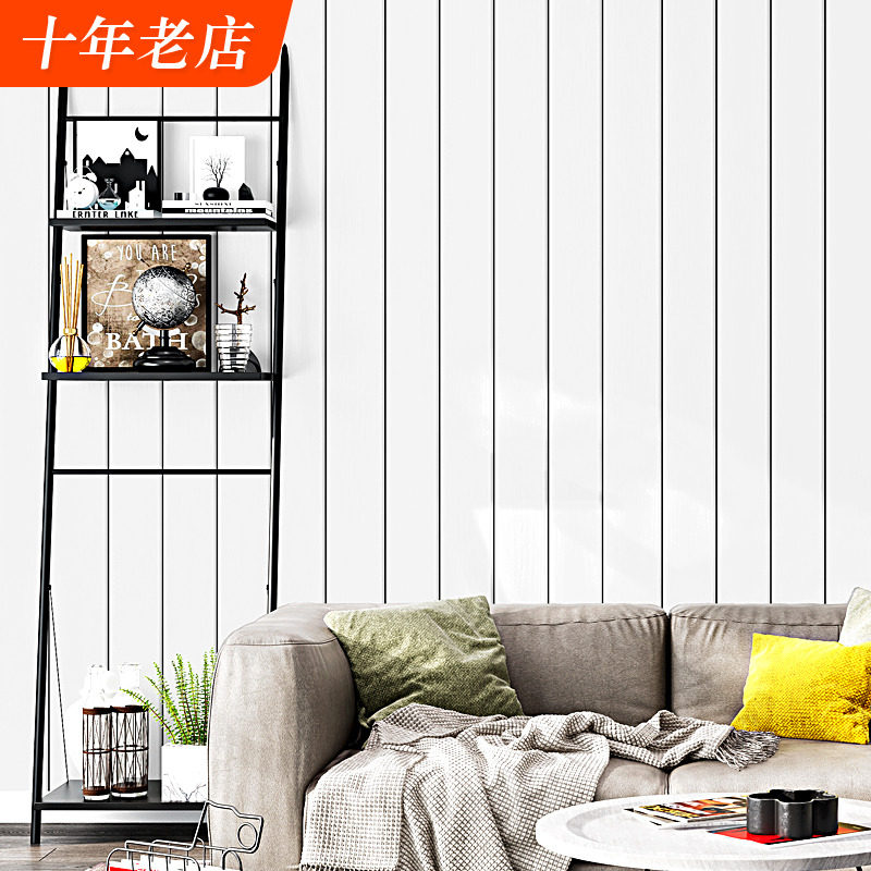 白色木纹墙纸现代简约北欧风格黑白竖条纹地中海客厅卧室背景壁纸