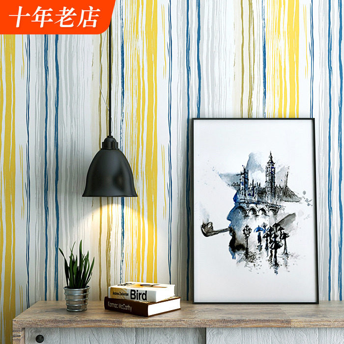 北欧风格墙纸现代简约竖条纹小清新卧室客厅地中海电视背景墙壁纸