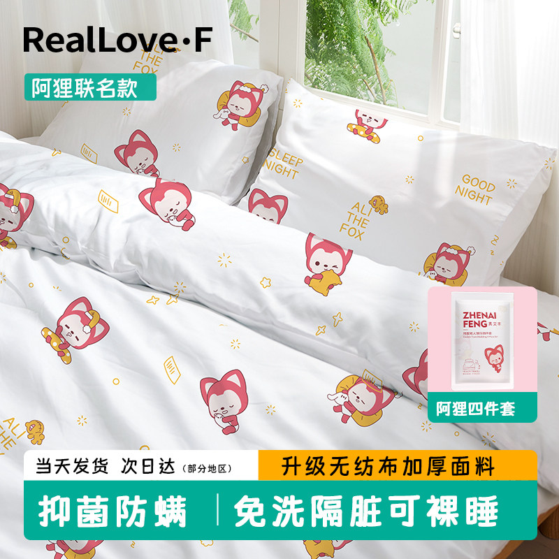ins裸睡纯棉四件套A类小清新全棉床单被套床笠款床上用品宿舍三件