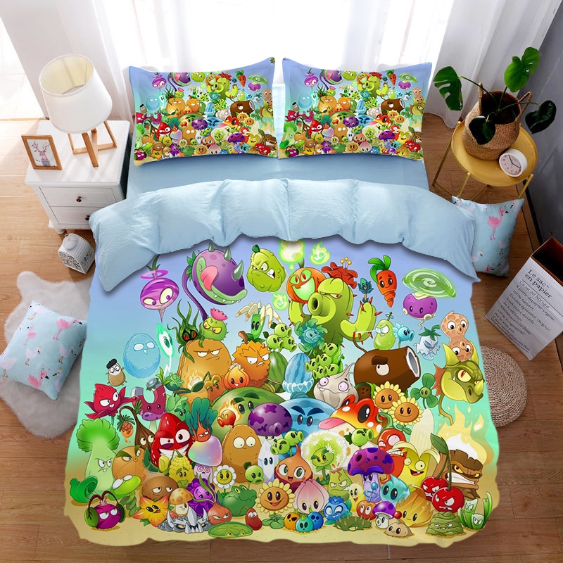 儿童卡通植物大战僵尸纯棉床单四件套全棉被套被单三件套卧室单人