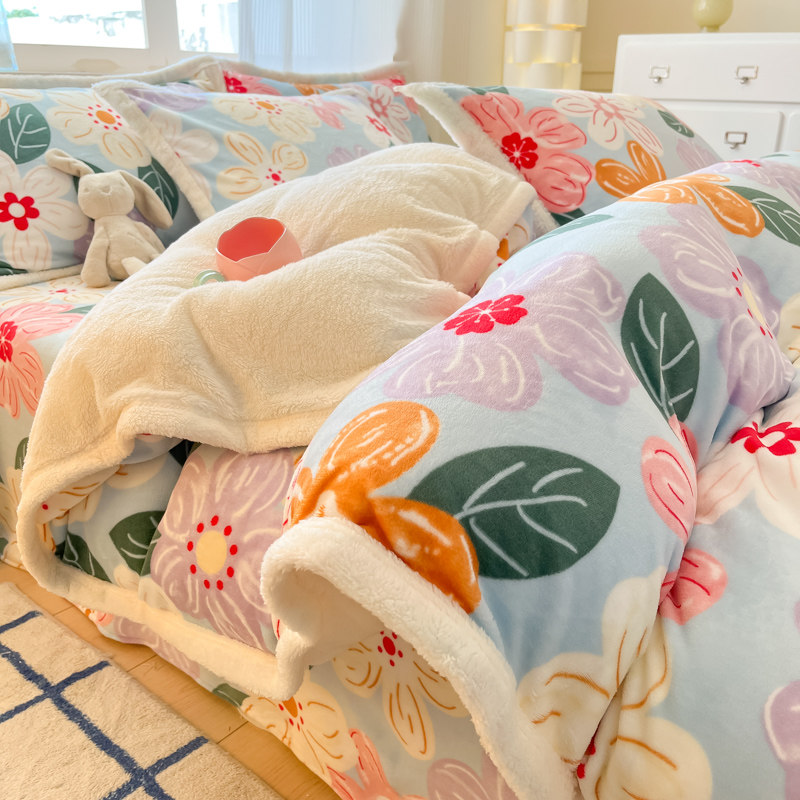 秋冬加厚保暖牛奶绒被套羊羔绒学生被罩加绒珊瑚法莱绒床单四件套