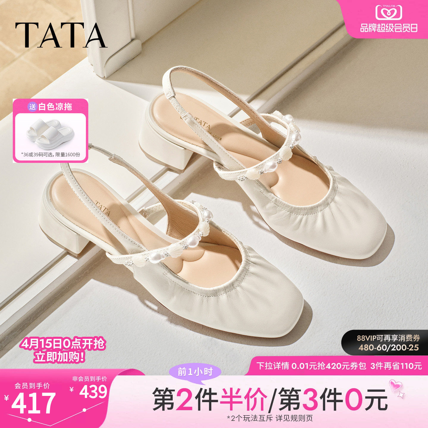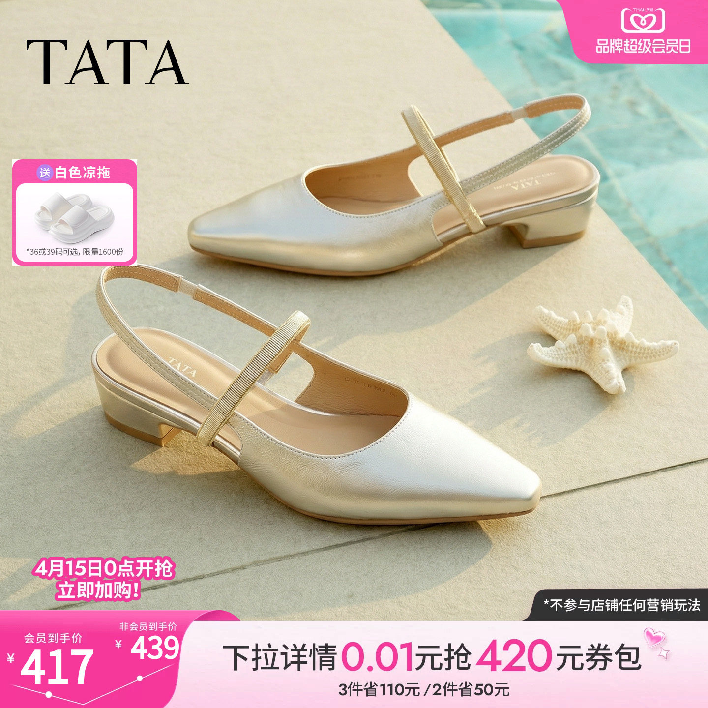 【所有女生的衣橱直播间】TATA他她夏季新款一字带凉鞋休闲高跟凉