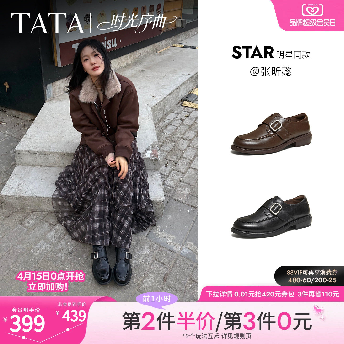 张昕懿同款TATA他她时光序曲真皮乐福鞋小皮鞋女厚底单鞋JZZ01AM6