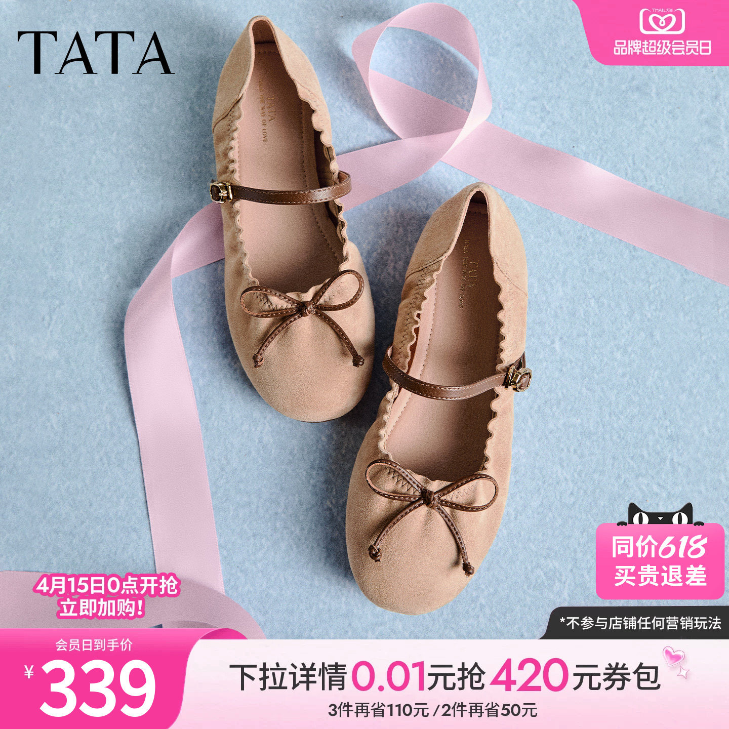 TATA他她超模玛丽珍鞋女平底单鞋女真皮休闲芭蕾舞鞋小皮鞋2026新