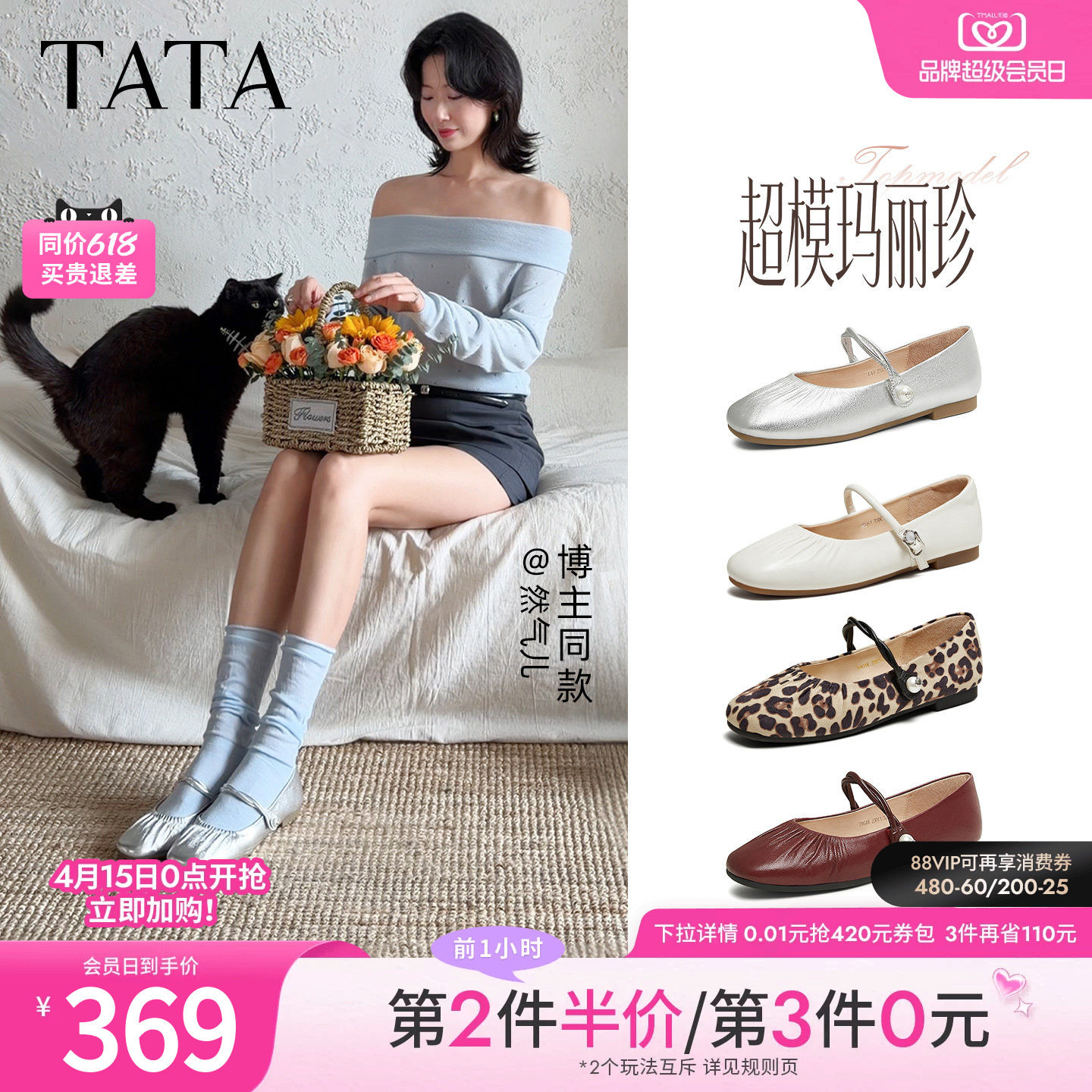 邢菲同款TATA他她超模玛丽珍鞋女平底鞋休闲鞋真皮芭蕾舞鞋2026新