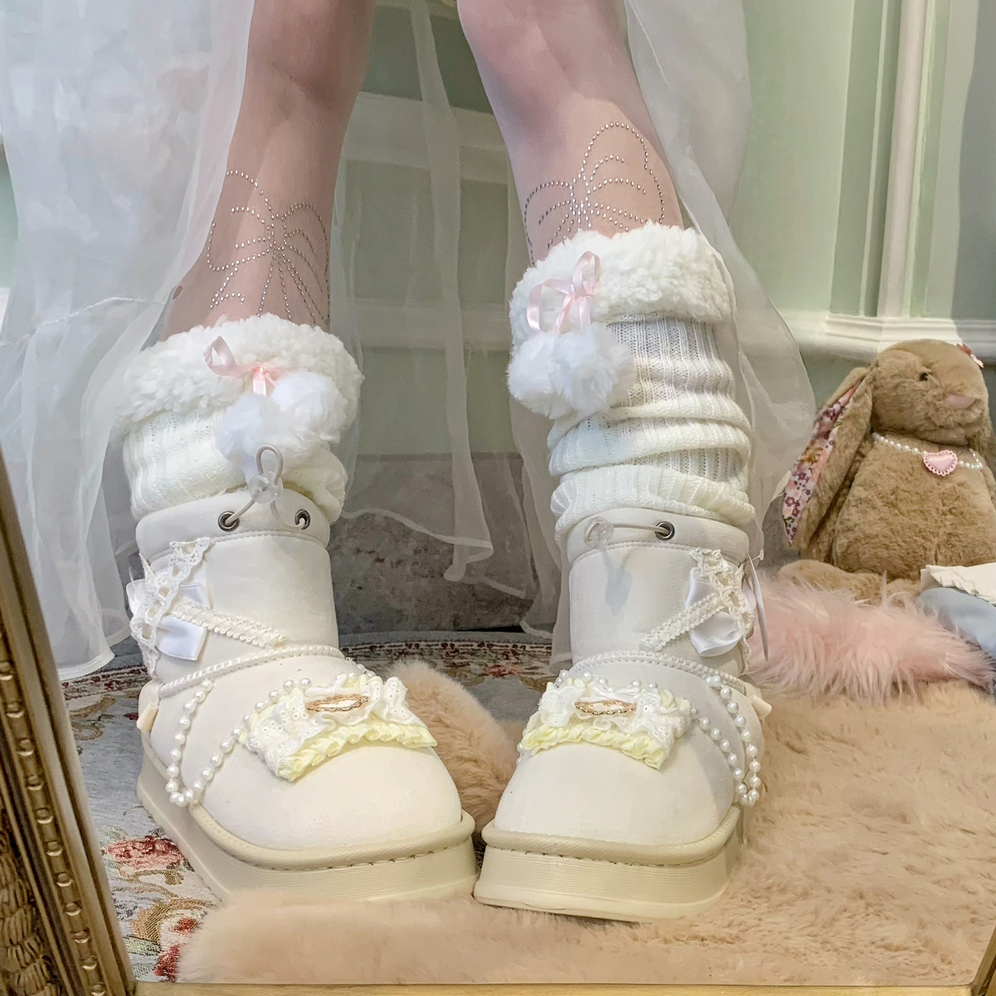 三团/全款绒绒雪兔芝士芒芒物语lolita可爱雪地靴厚底中筒靴