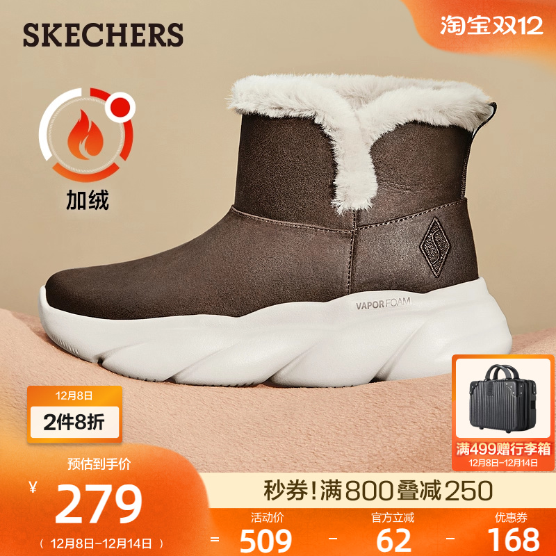斯凯奇女鞋冬季款加厚麻薯鞋时尚可爱雪地靴时尚短靴加绒保暖冬靴