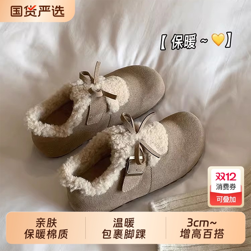 巨好看内增高厚底加绒勃肯鞋毛毛鞋2025冬可爱雪地靴棉鞋防水毛绒