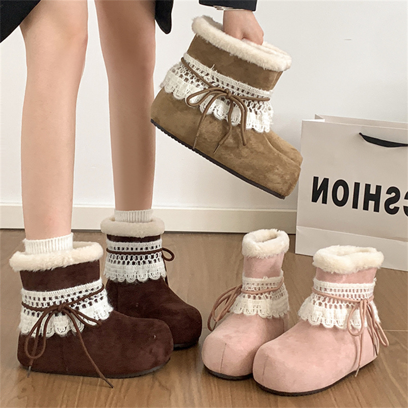 魔女之夜 原创lolita甜美短靴可爱雪地靴厚底鞋秋冬加绒中筒靴女
