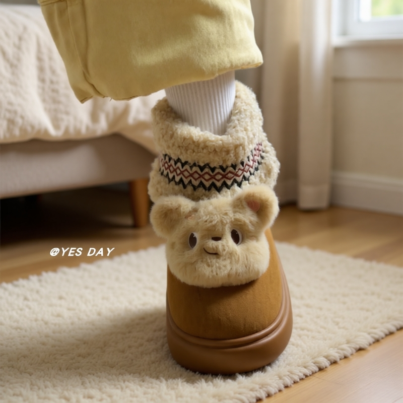 YesDay民族风加绒可爱雪地靴女2025冬季防滑保暖棉鞋毛绒鞋子黑色