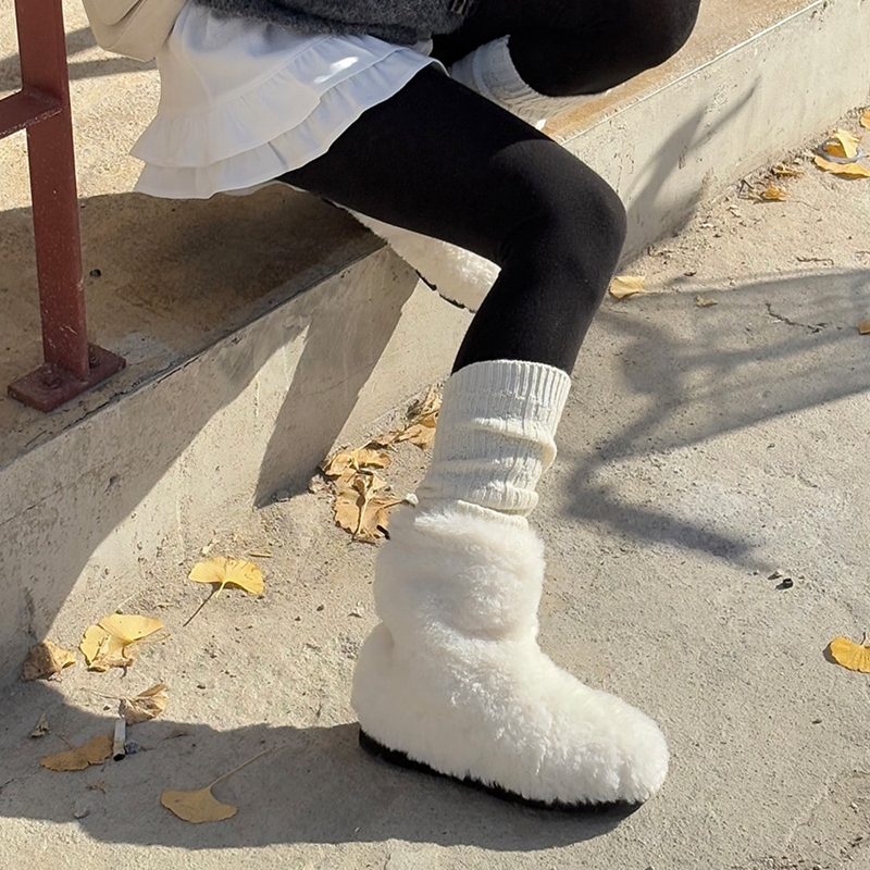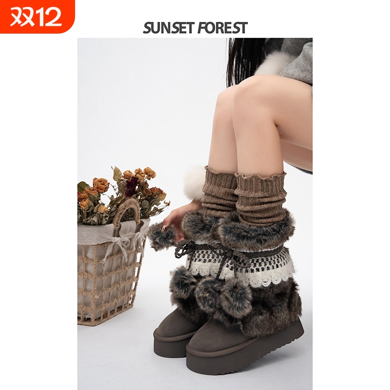 落日森林厚底增高毛毛可爱雪地靴女中筒加绒鞋棉保暖2025冬季新款