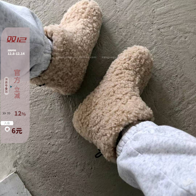 韩国东大门新款25冬减龄保暖泰迪羔羊毛加绒防滑可爱雪地靴毛毛靴