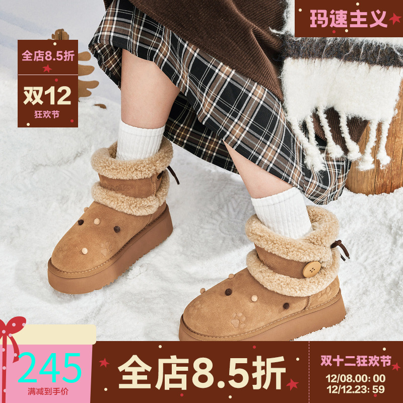 玛速主义2025新款加绒加厚保暖雪地靴女冬季休闲短靴厚底可爱棉鞋